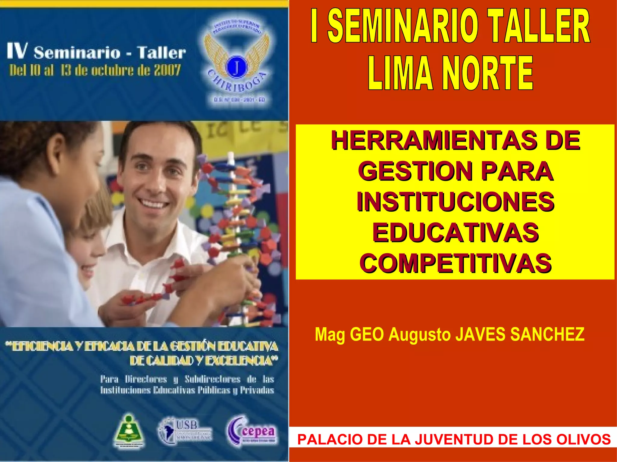 Este documento habla sobre herramientas de gestión para instituciones educativas competitivas. Describe conceptos clave como administración, objetivos empresariales, investigación de mercados, valores, visión, misión y empowerment que son importantes para que las instituciones educativas sean exitosas. También enfatiza la importancia del cambio y la innovación en la era digital.