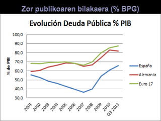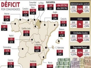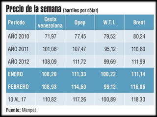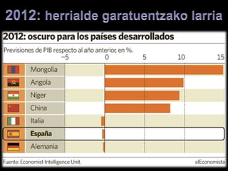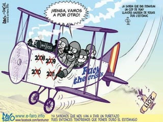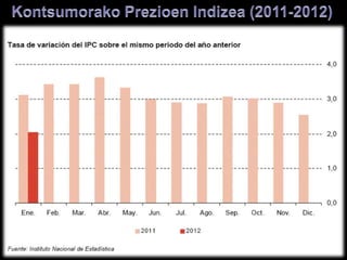 El documento habla sobre tres temas principales: 1) el aumento del precio del petróleo Brent debido a la posible decisión de Irán de dejar de exportar crudo a Europa, 2) las tasas de desempleo juvenil en países europeos en 2011 y principios de 2012, y 3) la reducción de la calificación crediticia de España por Standard & Poor's tras conocerse un alto nivel de desempleo.