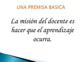 El taller busca actualizar a los docentes en planificación curricular, docencia en aula y evaluación para apoyar el aprendizaje de los estudiantes. Aborda temas como los estilos de aprendizaje y enseñanza, ambientes de aprendizaje y resultados esperados, con el fin de compatibilizar estilos, motivar el aprendizaje y proveer ambientes que favorezcan el logro de los objetivos de aprendizaje.