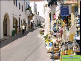 Kithira es una isla griega ubicada entre el Peloponeso y Creta que pertenece a la región de Ática a pesar de ser una isla jónica. Según la leyenda, la diosa Afrodita nació en Kithira, y la isla ha sido influenciada por varias civilizaciones como la minoica, bizantina y veneciana. Actualmente, Kithira tiene alrededor de 3,000 habitantes distribuidos en varios pueblos y ofrece paisajes naturales impresionantes, playas y sitios históricos