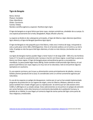 El documento proporciona información sobre el oso panda. Específicamente, describe que el oso panda es un mamífero carnívoro nativo de China occidental y las montañas cercanas al Tíbet. Tiene pelaje blanco y negro y un falso pulgar. Vive de forma solitaria y tranquila. Se encuentra en peligro de extinción debido a la destrucción de su hábitat y tiene una baja tasa de reproducción.
