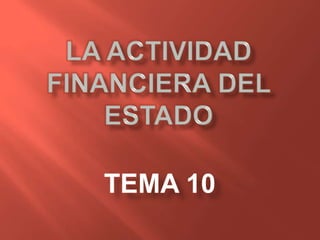El documento describe la intervención del Estado en la economía a través de su actividad financiera. El Estado recauda ingresos principalmente a través de impuestos y los gasta para regular el mercado, redistribuir la renta y lograr objetivos macroeconómicos. El presupuesto del Estado integra los presupuestos de distintas entidades públicas y describe el déficit, superávit o equilibrio presupuestario.