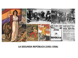 La Segunda República española (1931-1936) llegó en un periodo de crisis de los regímenes parlamentarios en Europa. Sus reformas políticas y sociales pusieron de manifiesto tensiones entre grupos como trabajadores y patrones, católicos y anticatólicos. La República duró ocho años, cinco en paz y tres en guerra civil. La Constitución de 1931 estableció un estado democrático con derechos sociales y sufragio universal, pero sus reformas como la separación Iglesia-Estado provocaron oposición