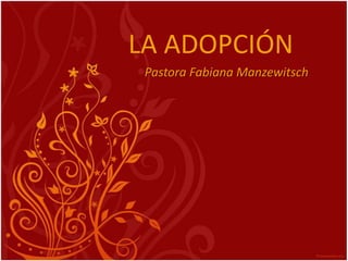 El documento habla sobre la adopción como hijos de Dios según Gálatas 4:1-7. Explica que Jesús pasó por tres etapas como hijo (TEKNION, TEKNON y HUIOS) hasta el tiempo señalado por el Padre para la ceremonia de adopción llamada "HUIOTEZIA". Ahora, por el Espíritu Santo, somos hijos con derecho a la herencia y al nombre del Padre.
