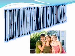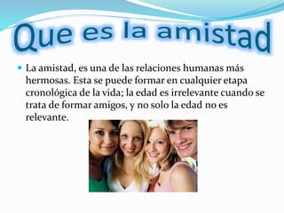 La amistad puede formarse a cualquier edad y no depende de factores como la edad o el valor de una persona. La amistad es un sentimiento hermoso que se guarda en el corazón como en una cajita de cristal, y un amigo verdadero es alguien en quien se puede confiar y que está presente durante los momentos difíciles. La amistad duplica la alegría y divide la tristeza.