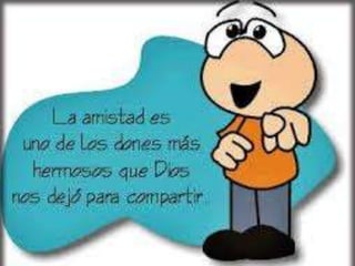 El documento describe la amistad como un regalo de los dioses que ha sido exaltado por sabios y poetas a través del tiempo. Define tres tipos de amistad según Aristóteles y señala que la verdadera amistad surge del bien común. Un amigo se preocupa por el bienestar del otro, lo escucha y aconseja, especialmente durante los momentos difíciles.