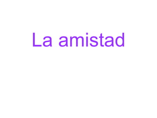 La amistad es una relación afectiva entre dos o más personas que comparten confianza, empatía, simpatía y fidelidad. Los principales componentes de la amistad son el amor, la confianza, la sinceridad y el interés y preocupación por el bienestar del otro. Las amistades generalmente duran toda la vida y se basan en la reciprocidad de apoyo mutuo en los buenos y malos momentos.