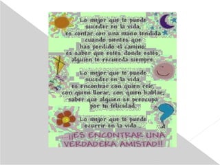 Un amigo verdadero es lo más valioso que alguien puede tener. La amistad verdadera involucra un deseo mutuo de compañía, preocupación por el otro y esperanza de éxito mutuo. Los amigos verdaderos están presentes en los buenos y malos momentos sin esperar nada a cambio.