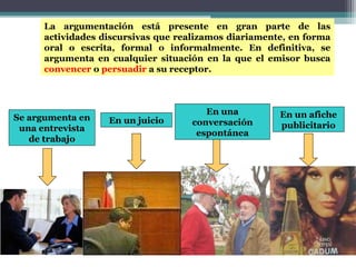 Este documento describe la argumentación dialógica y el debate. La argumentación dialógica involucra contraargumentos y discute diferentes perspectivas sobre un tema. Un debate es una discusión formal entre dos posiciones opuestas sobre un tema, siguiendo reglas como turnos de habla y tiempo. Participar en un debate requiere preparación y conocimiento del tema.