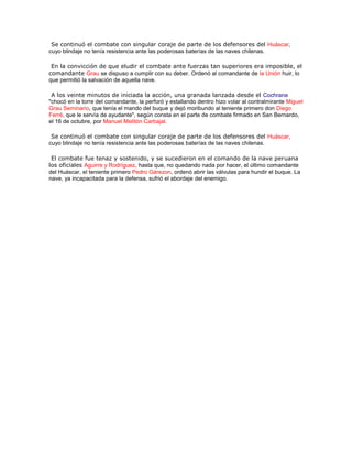 La Batalla de Agamos fue un combate naval entre el monitor peruano Huáscar y la escuadra chilena compuesta por 6 naves en 1879. A pesar de la superioridad numérica chilena, el comandante peruano Miguel Grau se enfrentó valientemente hasta que fue alcanzado por una granada enemiga. Aunque la tripulación peruana continuó luchando con coraje, el Huáscar terminó hundiéndose luego de que su último comandante ordenara abrir las válvulas ante la imposibilidad de defender la nave.