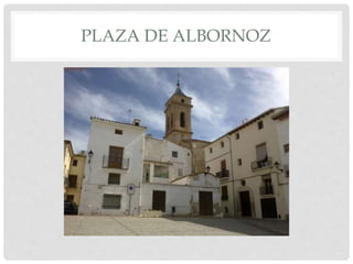 Este documento presenta varios de los monumentos históricos más importantes de la ciudad de Requena en España, incluyendo la Plaza de Albornoz, la Iglesia de El Salvador, el Pórtico de Santa María, el Museo de Arte Contemporáneo Florencio de la Fuente, la Plaza de Toros, el Monumento a la Vendimia, la Casa Consistorial, el Palacio del Cid, el Museo del Vino de Requena y la Torre del Homenaje.