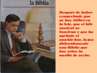 Un hombre solo en un hotel llama a recepción para preguntar por horarios de trenes. Engaña a la telefonista para que suba a su habitación ofreciéndole una copa. Terminan teniendo relaciones sexuales. Después el hombre bromea con la telefonista diciendo que sabía que esto pasaría porque lo puso en la Biblia, aunque en realidad lo había escrito él mismo en la primera página.