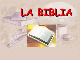 La Biblia es una colección de libros escritos por las comunidades judía y cristiana a lo largo de más de mil años para transmitir su experiencia religiosa. Está dividida en el Antiguo Testamento, que abarca desde la creación hasta el nacimiento de Jesús, y el Nuevo Testamento, que cubre la vida y mensaje de Jesús y las primeras comunidades cristianas. Originalmente los libros bíblicos se escribieron principalmente en hebreo, arameo y griego koiné.