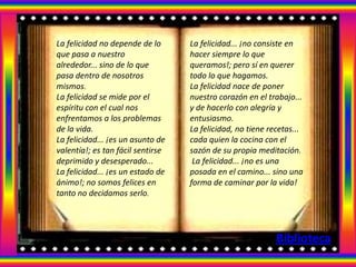 Este documento presenta una biblioteca virtual con diferentes temas como vivir, ser feliz, servir a otros, aprender, madurez, Dios y el tiempo. El usuario puede acceder a pasajes y reflexiones sobre estos temas haciendo clic en ellos. Se ofrece información concisa sobre conceptos como la felicidad, las ventas, la vida y el aprendizaje a lo largo de la vida.