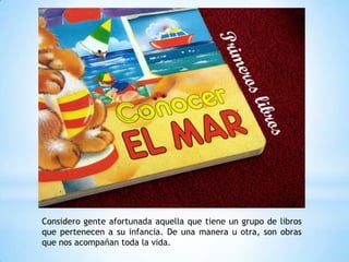 El documento habla sobre la importancia de los libros en la vida de una persona. Los libros nos acompañan desde la infancia y a lo largo de toda la vida, influyendo en nuestro desarrollo artístico y creativo. Sin embargo, algunos libros pueden resultar largos y difíciles de leer. Los libros permiten familiarizarse con otros idiomas y culturas, evadirse de la realidad cotidiana y entretenerse o aprender.