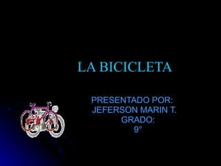 Este documento describe las partes y tipos principales de bicicleta. Explica que una bicicleta típica tiene cuadro, ruedas, sistema de transmisión, frenos y manillar. Luego describe los tipos principales de bicicleta como la doméstica, de montaña, de carreras y de turismo, destacando sus características de diseño. Finalmente menciona otros vehículos relacionados como el monociclo, triciclo y cuadriciclo.