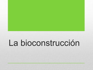 La bioconstrucción se refiere a la forma de construir que es respetuosa con todos los seres vivos y favorece los procesos evolutivos. Minimiza el impacto ambiental de la construcción tradicional integrando la técnica y los avances científicos dentro de una concepción ecológica. Utiliza materiales del medio ambiente como el bambú que no afectan el ecosistema.