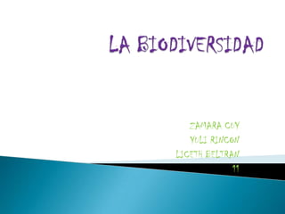 La biodiversidad es el resultado de la evolución y se manifiesta en la existencia de diferentes formas de vida. Existen tres niveles de biodiversidad: genético, ecológico y biogeográfico. La biodiversidad depende no solo de la riqueza de especies sino también de su abundancia relativa. Las principales amenazas a la biodiversidad son la degradación de ecosistemas, especies exóticas invasoras, explotación excesiva de recursos y el cambio climático.