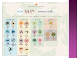 El documento define la biodiversidad como la variedad de organismos vivos en la Tierra, incluyendo ecosistemas, especies y su variabilidad genética. Explica que el Convenio sobre la Diversidad Biológica (CDB) tiene como objetivos la conservación de la biodiversidad y su uso sostenible, así como la participación justa en los beneficios de los recursos genéticos. El CDB estableció la meta de reducir significativamente la pérdida de biodiversidad para el 2010, compromiso adoptado por la Asamblea General de la ONU