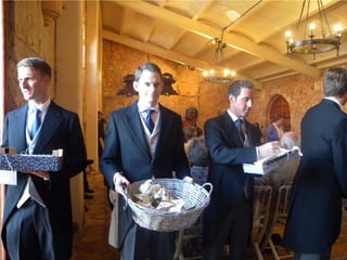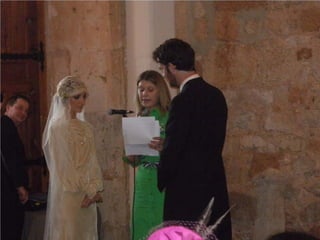 La boda se celebró en los claustros de Ayllón, destacando la participación de la madre del novio. También se realizó un cóctel previo a la cena para los asistentes.