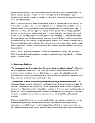 carrera. En la vida cristiana, el creyente debe de abstenerse de todo lo que le puede estorbar en