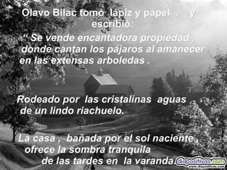 Olavo Bilac, un poeta amigo de un dueño de un pequeño negocio, escribió un anuncio para la venta de la casa de su amigo usando descripciones poéticas que enfatizaban las cualidades positivas de la propiedad y su entorno natural. Después de leer el anuncio, el dueño se dio cuenta de lo maravillosa que era realmente su casa y decidió no venderla. El documento concluye que a menudo no valoramos lo que tenemos y en su lugar buscamos "falsos tesoros", cuando en realidad los amigos