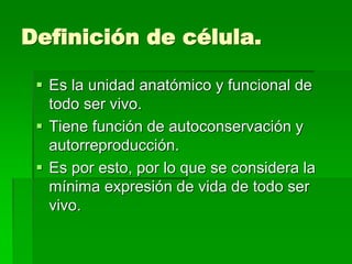 El documento proporciona información sobre las células, comparando las células animales y vegetales. Explica que las células animales tienen membrana celular y citoplasma, mientras que las células vegetales tienen membrana celular, citoplasma y pared celular. También describe que el material hereditario se encuentra en el núcleo de ambos tipos de células.