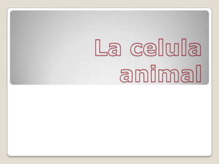 La célula animal contiene varias partes importantes como la membrana celular, las mitocondrias, la cromatina, los lisosomas y el aparato de Golgi. La membrana celular delimita la célula, mientras que las mitocondrias generan energía para la célula. La cromatina contiene el ADN y las proteínas en el núcleo, y los lisosomas digieren moléculas. La célula vegetal también posee una membrana, mitocondrias y núcleo, así como clor