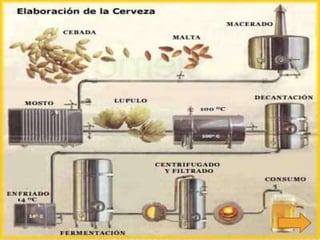 Este documento presenta una breve introducción a la cerveza, incluyendo su definición, historia, proceso de fabricación y efectos en la salud. También describe dos marcas de cerveza populares, Heineken y Cruzcampo, detallando su origen, tamaño y presencia en el mercado. El documento concluye con una introducción general a la cerveza.
