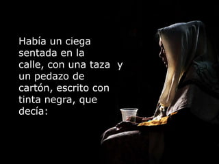 Un creativo de publicidad cambió el letrero de una ciega que pedía limosna en la calle. Donde antes decía "Ciega, por favor ayúdenme", ahora decía "Si haces lo que siempre has hecho, obtendrás los resultados que siempre has obtenido". Como resultado, la taza de la ciega se llenó de billetes y monedas porque el nuevo mensaje fue más efectivo.