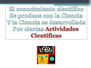 El documento habla sobre la ciencia y la tecnología. Explica que la ciencia se basa en el método científico de observación sistemática y experimentación para generar conocimiento verificable. La tecnología utiliza el conocimiento científico para crear herramientas, aunque la ciencia y la tecnología son conceptos distintos. También destaca que la investigación científica es fundamental para el desarrollo tecnológico de los países.