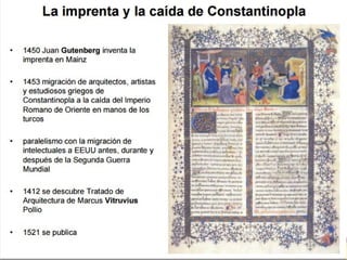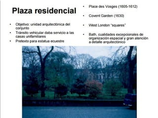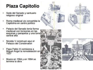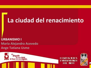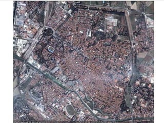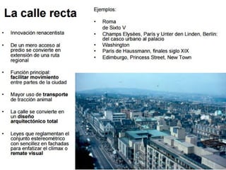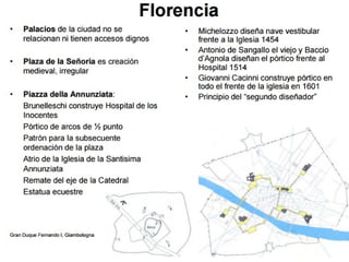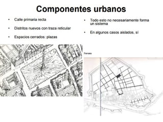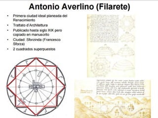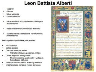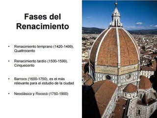 La ciudad del renacimiento describe la arquitectura y urbanismo de las ciudades durante el Renacimiento en Italia. Se enfoca en cómo las nuevas ideas sobre la belleza, la simetría y la funcionalidad influyeron en el diseño de las ciudades y edificios durante este período.