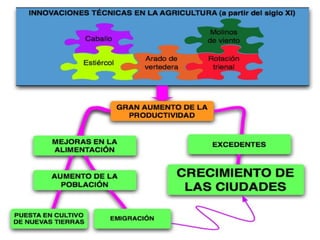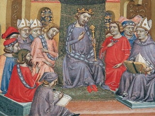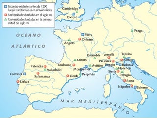 Este documento resume los principales aspectos de la ciudad medieval europea entre los siglos XII y XV. Explica la recuperación de la vida urbana debido al crecimiento agrario y la expansión demográfica, el desarrollo de la artesanía y el comercio en las ciudades, y la formación de la burguesía. Asimismo, describe cómo los monarcas buscaron el apoyo de la burguesía para aumentar su poder frente a la nobleza, dando lugar a instituciones como las Cortes y los Parlamentos. Finalmente, analiza la crisis de