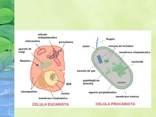 El documento describe las características fundamentales de las células, incluyendo que son la unidad básica de todo ser vivo, la teoría celular, los tipos de células (procariotas y eucariotas), las partes de las células animales y vegetales eucariotas, y los procesos de división celular como la mitosis y la meiosis.