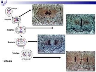 Este documento resume la estructura y función de las células. Explica que las células están compuestas de una membrana, citoplasma y varios orgánulos como el núcleo, mitocondrias y sistema de endomembranas. Describe las diferencias entre células procariotas y eucariotas, y los tipos de células vegetales y animales. Resalta la teoría celular y los descubrimientos iniciales de Hooke y van Leeuwenhoek que llevaron al entendimiento moderno de la célula como unidad bás