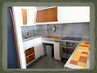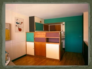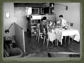 El documento describe tres proyectos arquitectónicos históricos: una casa del siglo 18 en Madrid que combinó la cocina y el salón, la Unité d'Habitation de Marsella diseñada por Le Corbusier en 1945 que sintetizó su trabajo experimental en vivienda colectiva, y la casa Farnsworth construida por Mies van der Rohe en 1950 en Plano, Illinois.