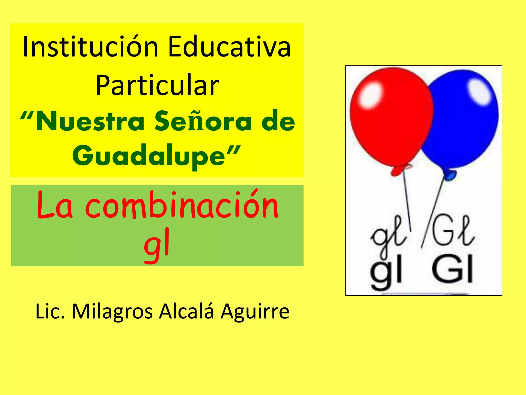 Este documento habla sobre la Institución Educativa Particular "Nuestra Señora de Guadalupe". Contiene una lista de palabras que comienzan con la letra "gl".