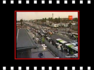 Este documento compara los sistemas de transporte público Transmilenio en Bogotá y Transantiago en Santiago, destacando sus semejanzas y diferencias. Las semejanzas incluyen que son sistemas de transporte público que utilizan las mismas maquinarias y están controlados por GPS. Las principales diferencias son que Transmilenio se implementó gradualmente mientras que Transantiago fue de forma abrupta, y que Transmilenio tiene paraderos protegidos del clima mientras que los de Transantiago se han deteriorado.