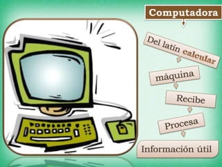 El documento describe los componentes fundamentales de una computadora, incluyendo hardware como la unidad central de procesamiento, memoria, almacenamiento y periféricos. También cubre conceptos de software como sistemas operativos y aplicaciones. Además, resume brevemente la historia y evolución de las computadoras desde sus orígenes hasta las generaciones modernas.