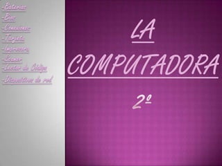 Una computadora es una máquina electrónica que recibe y procesa datos para convertirlos en información útil. Está compuesta de componentes como la tarjeta madre, la CPU, la memoria RAM y las unidades de almacenamiento. Los periféricos como el teclado, el ratón y el monitor permiten la interacción con el usuario.