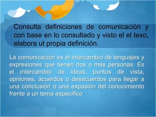 La comunicación es el intercambio de lenguajes y
