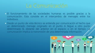 La comunicación es fundamental para el funcionamiento de las sociedades humanas, ya que permite el intercambio de mensajes entre individuos. Técnicamente, la comunicación implica la transmisión de información a través de un mensaje que se origina en un punto y llega a otro punto distante en el espacio o el tiempo.