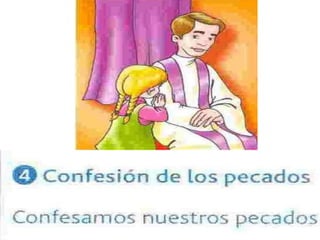 El documento proporciona instrucciones para una buena confesión. Indica que se debe pensar en los mandamientos y confesar los pecados cometidos, arrepintiéndose de ellos. Mientras el sacerdote otorga la absolución, se reza el "Señor mío Jesucristo" pidiendo perdón. También incluye información sobre el pecado, los actos necesarios para una buena confesión como el examen de conciencia y cumplir la penitencia impuesta.