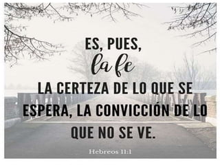 Este documento explora el significado y la importancia de la convicción. Define la convicción como tener creencias firmes y estar plenamente convencido, incluso de cosas que no se pueden ver. Examina varias preguntas sobre las convicciones de uno en relación con la Biblia, Dios, Cristo y la iglesia. Argumenta que la convicción es creer firmemente y tener seguridad y confianza en Dios y en Su poder y promesas, aunque no se puedan ver.