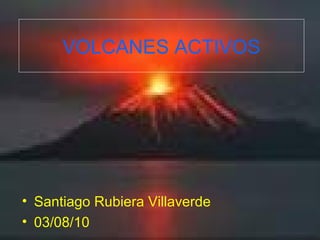 Este documento describe las partes principales de un volcán activo, incluyendo el cráter, la chimenea, el cono volcánico y la cámara magmática. Explica que cuando la presión de la magma en la cámara es demasiado alta, se produce una erupción volcánica que expulsa lava y gases por el cráter. Los volcanes pueden estar dormidos o inactivos, y las erupciones varían en intensidad dependiendo de la composición de la magma. Finalmente, clasifica los volcanes en cuatro tipos principales