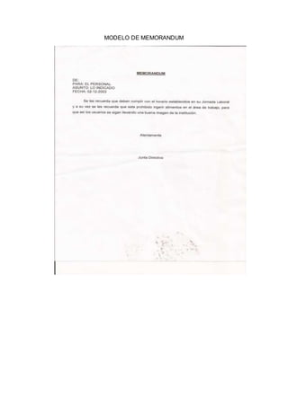 El documento presenta diferentes modelos de documentos formales como memorandums, circulares internas y externas, actas, constancias de estudios, currículums, cartas familiares y cotizaciones. Estos modelos son provistos por la Facultad de Ciencias Económicas y Sociales de la Universidad Fermín Toro para la carrera de Relaciones Industriales.