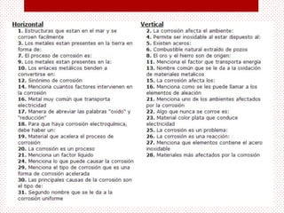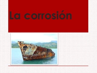 La corrosión se define como el deterioro de un material a consecuencia de un ataque electroquímico por su entorno. Puede ocurrir mediante una reacción química o electroquímica entre el material y su ambiente. Existen diferentes tipos de corrosión como la uniforme, galvánica y por picaduras. Los metales son los materiales más propensos a sufrir corrosión.