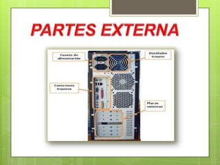 Este documento presenta información sobre la CPU (unidad central de procesamiento), incluyendo su función como el componente principal que procesa datos y ejecuta instrucciones en una computadora, y cómo ha evolucionado de placas de circuitos grandes a chips diminutos. También describe conceptos clave como la velocidad de la CPU medida en megahertz y gigahertz, y sus unidades funcionales como la unidad aritmético lógica y la unidad de control.
