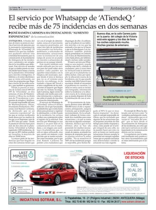 El Ayuntamiento de Antequera ha finalizado el pliego de condiciones para la unidad de estancia diurna para mayores, que saldrá a concurso con un precio de licitación de cero euros. Se prevé que el centro dé servicio a un máximo de 80 mayores con deterioros cognitivos y ofrecerá servicios como transporte adaptado y rehabilitación cognitiva. Además, el servicio de atención a través de WhatsApp ha recibido un aumento significativo en las incidencias reportadas por los ciudadanos, destacando la importancia de la participación ciudadana en la gestión de incidencias en la vía pública.