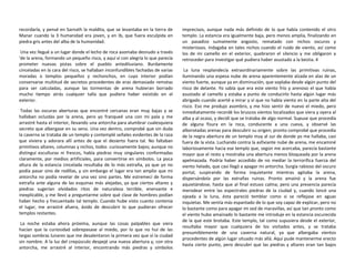El documento describe la exploración de una ciudad antigua y sin nombre en el desierto de Arabia. El narrador es el primero y único hombre en visitar las ruinas, donde encuentra templos subterráneos con altares y símbolos extraños. En uno de los templos más grandes, el narrador descubre que el viento sopla de forma misteriosa desde el interior, infundiéndole un gran temor a lo desconocido.